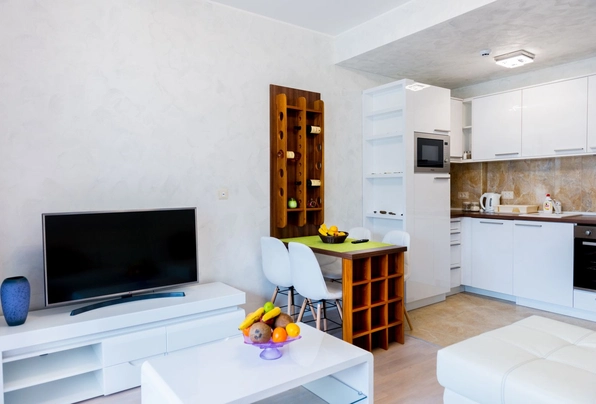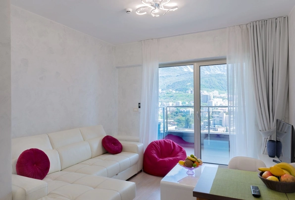 Аренда ID7605. Сдается в аренду квартира с 1 спальней с панорамным видом на море, горы и весь город Будва, сдается на круглый год или до летнего сезона, терраса, площадь - 40м², расположена в престижном жилом комплексе «Гармония», рядом Dukley Gardens на полуострове Завала. Современно оформленная квартира с панорамным видом на Адриатическое море идеально подходит для долгосрочной аренды сроком на один год. Комплекс предлагает превосходные условия: круглосуточную охрану, техническое обслуживание, удобную парковку, а также близость к пляжам, ресторанам и ключевым объектам инфраструктуры. «Гармония» включает в себя два ресторана, спа-центр, фитнес-зал, русскую школу, детский сад, стоматологическую клинику — все в одном месте, что делает жилье максимально удобным для комфортной и роскошной жизни на черногорском побережье. Паковка возле дома за отдельную плату, можно приобрести месячную карту.