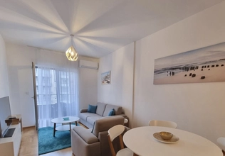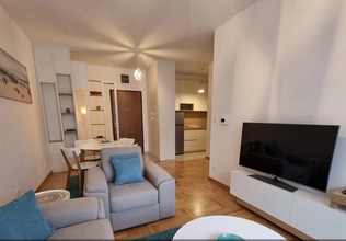 Аренда Будва №7678. Центр. Сдается квартира с 1 спальней на длительный срок. Площадь 50 м2. 6 этаж. Гостиная с кухонн…
