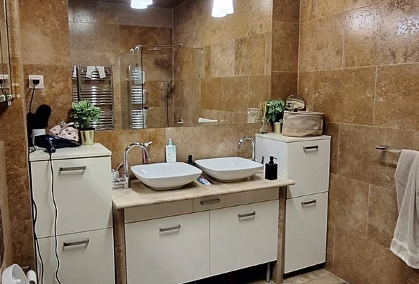 Аренда ID7683. Сдается современно и качественно меблированная двухкомнатная квартира площадью 80 м² в самом центре Будвы, в доме на главной развязке (Которские светофоры), с гаражным местом, включенным в стоимость. Квартира расположена на 5 этаже здания с одним лифтом и является одной из лучших по расположению в доме, имеет много солнечного света, благодаря чему особенно тёплая в зимний период. Планировка включает прихожую, кухню с обеденной зоной, гостиную, ванную комнату, отдельный туалет, постирочную, две спальни и террасу. Квартира оборудована кухней, выполненной на заказ со встроенной техникой, электрическим тёплым полом и мультисплит-системой кондиционирования. В непосредственной близости находятся рестораны, аптеки, пекарни, магазины, школа, автобусная станция и медицинский центр. Условия аренды: договор на 1 год, оплата двух месячных арендных плат вперёд (первая и последняя), а также один депозит. Месячная аренда — 1.350 €. Квартира доступна к заселению сразу.