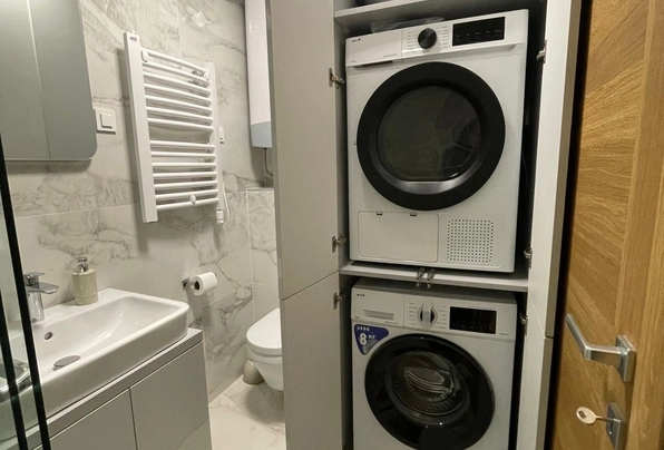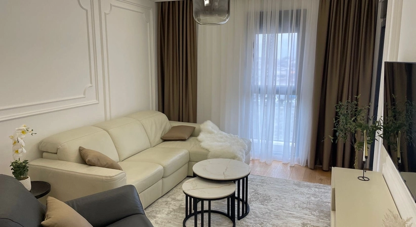 Аренда ID7717. Сдаётся роскошная квартира — премиальный квартал Kips, Подгорица. Сдаётся современно оформленная квартира площадью 47 м², расположенная в новом жилом комплексе Premium Kips, ламела 2, 1 этаж. В квартире есть балкон с выходом из гостиной и спальни, окна выходят на благоустроенный зелёный двор с детской площадкой, что обеспечивает спокойное и комфортное проживание. Квартира оборудована дизайнерской мебелью премиум-класса, современной техникой, телевизорами в гостиной и спальне; ванная комната оснащена стирально-сушильной машиной, что дополнительно повышает комфорт проживания. К квартире также прилагается парковочное место в гараже на уровне −1, расположенное рядом с лифтом. Стоимость аренды: 700 € + коммунальные платежи. При заселении оплачиваются первый месяц аренды, последний месяц и депозит.