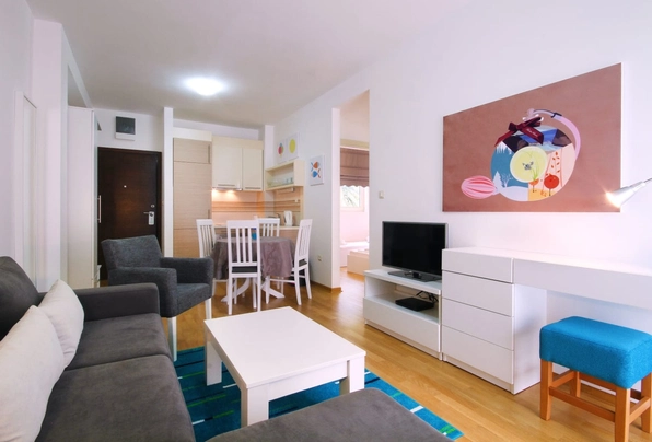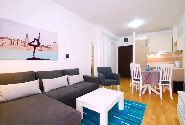 Аренда Будва № 7740. Сдается квартира с 2 спальнями на длительный срок, центр города. К морю пешком 10 минут. В квартире есть все необходимое для комфортного проживания.