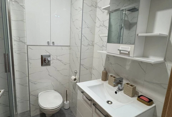 Аренда Бечичи № 7867. На долгий срок квартира с 1 спальней, 46 м2, новый дом. Все необходимое - посудомоечная ,стиральная машина, wi-fi, тв, кондиционеры в каждой комнате, духовка, большой холодильник. Море через дорогу. Условия оплаты: первый месяц, последний и депозит. Счета отдельно. Не разрешено содержание домашних животных.