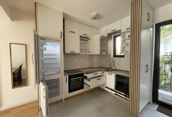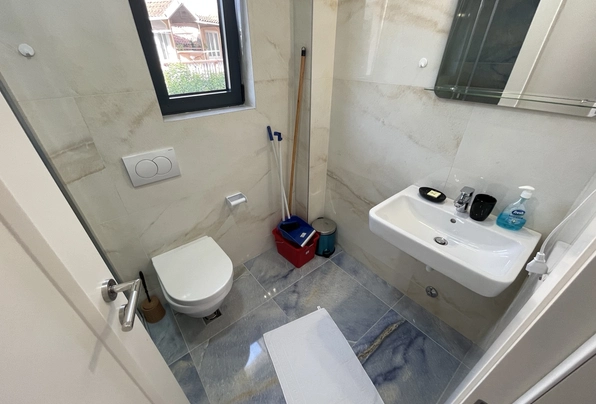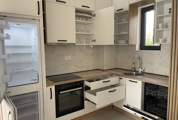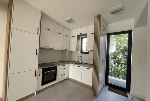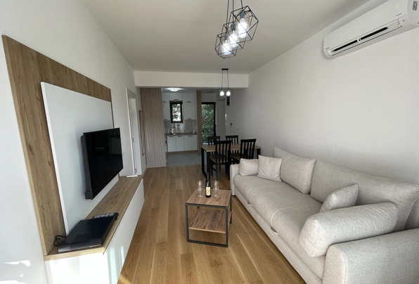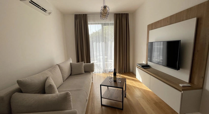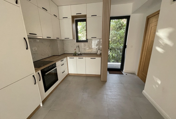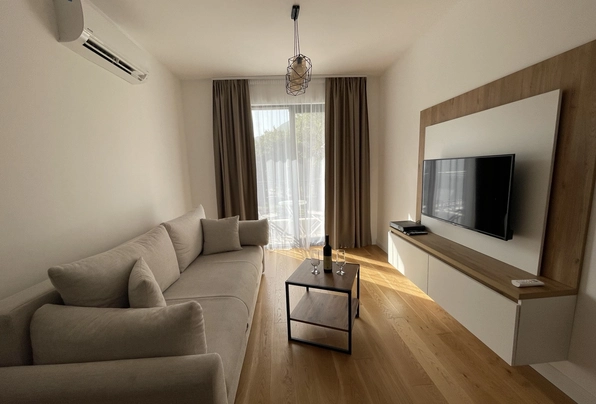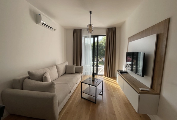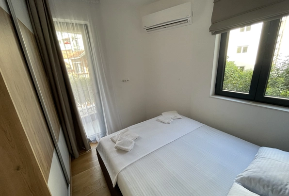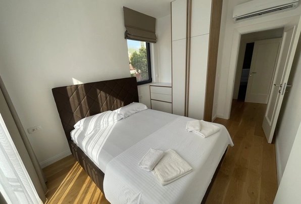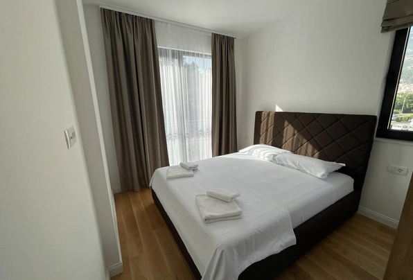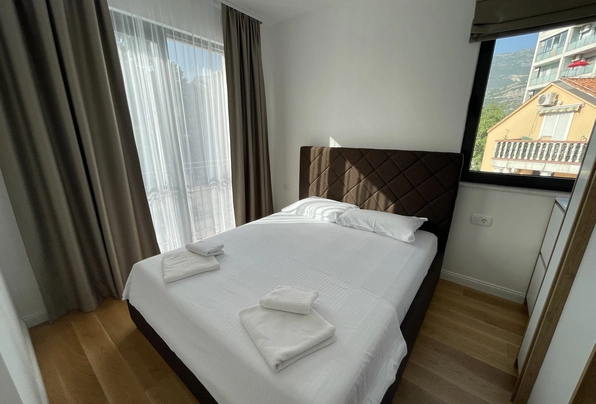 Аренда Будва № 7899. • Сдается квартира с 2 спальнями, 54 м2, 1 высокий этаж. Вид на город и горы. Расстояние до моря – 400м. Новый дом. Квартира полностью меблирована и оборудована техникой и готова к заселению. Условия оплаты: первый месяц, последний и депозит. Счета отдельно.