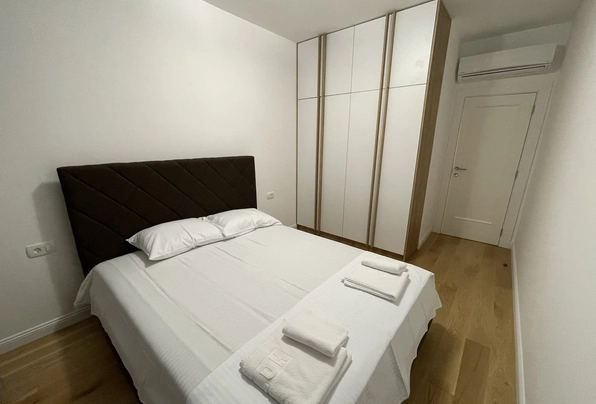 Аренда Будва № 6063. На долгий срок новая квартира с 1 спальней, 51 м2, 4 этаж в новом доме с лифтом. В квартире нова…