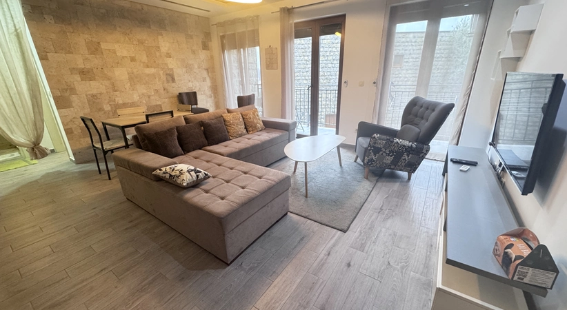 Продажа Петровац № 2264. Продаётся шикарная квартира в Петроваце с бассейном 54м2. Прекрасный вид с террасы на бассейн и оливки, рядом большая зеленая зона. Новый дом, паркинг возле дома. Тихое место. До моря 10 минут пешком ест тропинка.