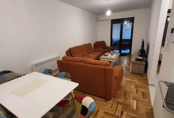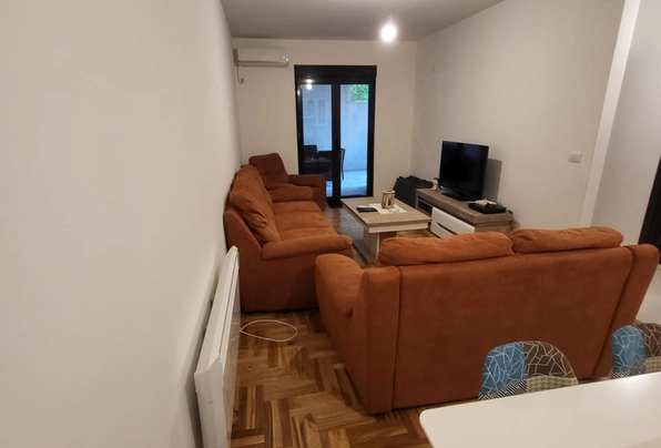 Продажа Бечичи №3115. Продается квартира с 1 спальней. Новый дом, 2 лифта. Этаж 1. Меблирована. Площадь 49м2 +30 м2 терраса.
