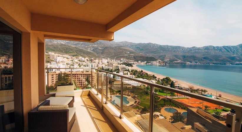 квартира с двумя спальнями премиум класса с панорамным видом на море горы, Бечичи, новый комплекс Гармония