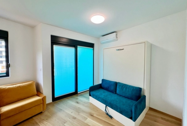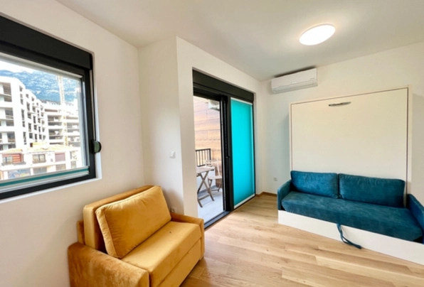 Продажа Бечичи №4405. Продается студия в новом доме в Бечичи. Приземле. Площадь 28м2. Паркет. До моря 7 минут пешком.