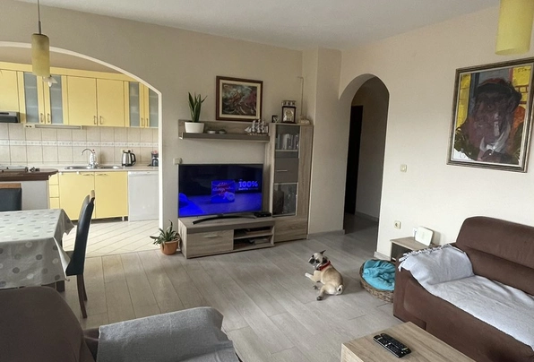 Продажа Тиват 4667. Продаётся просторная квартира с 3 спальнями 106м2 в Тивате в 1 км от моря с видом на Porto Montenegro. Квартира расположена на 3 этаже в доме без лифта. Имеет 3 спальни, 2 ванных комнаты, 3 террасы и 2 парковочных места. Квартира продаётся со всей мебелью и бытовой техникой. Документы чистые.