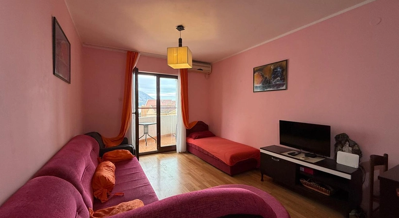 Продажа Бечичи № 4681 На продажу квартира с 1 спальней в Бечичи, вид на море, через дорогу от моря. Площадь 42м2, терраса. Ламинат. Через дорогу от моря. рядом кафе, рестораны, супермаркет, аптека. Южная солнечная сторона.
