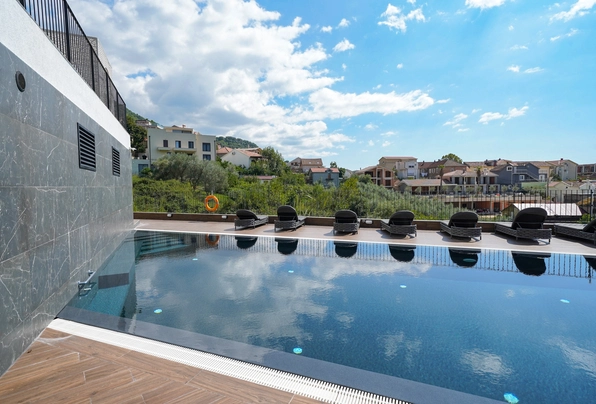Продажа ID4748. Квартира с 2 спальнями и панорамным видом рядом с центром Тивата. Новые меблированные апартаменты с 2 спальнями в ЖК с видом на море в Тивате. До центра Тивата и Porto-Montenegro пешком всего 10-15 минут. Близость к международной школе Knightsbridge делает эти апартаменты отличным выбором для семей с детьми.Из каждой комнаты открывается панорамный вид на море и зеленые рощи, а также имеется выход на террасу. Апартаменты состоят из отдельной прихожей, гостиной, совмещенной с кухней с выходом на террасу с панорамным видом на море, двух спален, каждая из которых имеет выход на террасу и 2 ванных комнат. Основные преимущества: панорамные виды на море из всех комнат, много света и удачная планировка обеспечивают ощущение уюта и пространства, современный дизайн в пастельных тонах создает атмосферу легкости и уюта, идеально для постоянного проживания, рядом вся инфраструктура, в комплексе имеется бассейн и SPA зона, консьерж, подземный гараж защитит Ваш автомобиль в любую погоду, 2 спальни, 2 ванные комнаты, современный дизайн, пастельные тона. Комплекс включает в себя 2-х уровневый подземный гараж на 32 парковочных места, благоустроенную охраняемую придомовую территорию, паркинг, бассейн и СПА. К комплексу подходит асфальтированная дорога, городской водопровод, канализация, высокоскоростной интернет, имеется электрический генератор на 24 кВт, резервный запас воды. Комплекс обслуживается управляющей компанией. Квартира продается с парковочное место на 1 а/м в подземном гараже комплекса. Цена машиноместа – 25.000 евро.