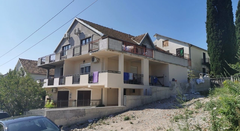 Продажа ID6052. Продается часть дома в Радовичи, Тиват, всего в 50 метрах от Lustica Centrale. Полностью реконструирован в 2020 году. Два апартамента с одинаковой планировкой, общая площадь 110 м², из которых 63 м² занимают апартаменты, остальная часть – крытая терраса с возможностью остекления. В каждом апартаменте спальня, гостиная с мини-кухней, ванная комната и просторная терраса. На первом этаже общая кухня с встроенной духовкой, варочной панелью, холодильником с морозильной камерой и стиральной машиной. Перед домом еще одна терраса для отдыха. Участок около 20 м² можно использовать как парковку или террасу. Два парковочных места. До моря 700 метров. Территория полностью огорожена бетонным забором и коваными элементами, установлено видеонаблюдение. Кованая конструкция с навесом по всему периметру, каменный барбекю и небольшое помещение для хранения. Стоимость 220 000 евро.