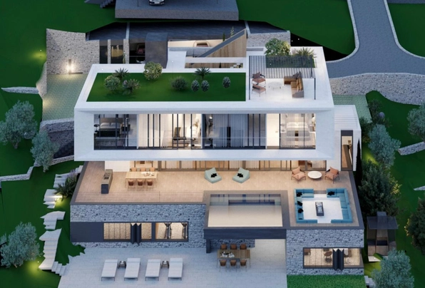 Продажа Режевичи № 7096. Роскошная вилла с бассейном на скале над морем Общая площадь виллы: 922 м2 Жилая площадь: 755 м2 Площадь участка: 1 692 м2 Спальни: 7 Ванные комнаты: 7 Этаж: 3 Бассейн Лестница на пляж Роскошная дизайнерская вилла в уникальном месте, на скале над морем, с бассейном и захватывающим и беспрепятственным видом на открытое море. Вилла построена на трех функционально разделенных уровнях: ПОДВАЛ (220 м2): Два коридора, апартаменты для прислуги (комната с кухней и ванной), кинотеатр, велнес, тренажерный зал, туалет, подсобное, служебное и техническое помещение и большая терраса с бассейном ПЕРВЫЙ ЭТАЖ: (308 м2): Прихожая с галереей, гардеробная, туалет, кухня с кладовой и столовой, гостиная с камином, библиотека, служебные апартаменты (комната с кухней и ванной), джакузи на большой крытой террасе, техническое помещение и 4 парковочных места ПЕРВЫЙ ЭТАЖ (227 м2): коридор, большая терраса, пять спален с ванными комнатами и лестница. У въезда в гараж вместимостью 4 парковочных места образована круговая развязка с фонтаном. Кроме того, над гаражом есть 4 открытых парковочных места. Вилла расположена в непосредственной близости от будущего 5-звездочного комплекса Smokva Bay, в одном из самых привлекательных мест на всем черногорском побережье. Расположен примерно в 3 км от Петроваца, примерно в 15 км от Будвы и примерно в 35 км от аэропорта Тиват.