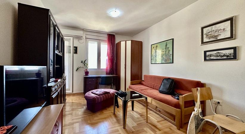 Продажа Будва № 7226. Квартира с 1 спальней, 47 м2, 1 этаж, новый дом с лифтом. Квартира на солнечной стороне, с террасы вид на город. Квартира продается с мебелью.