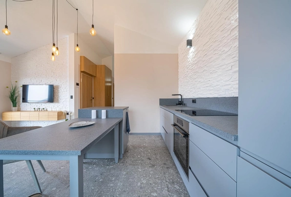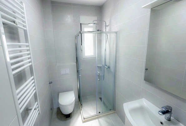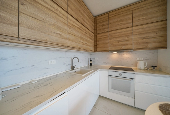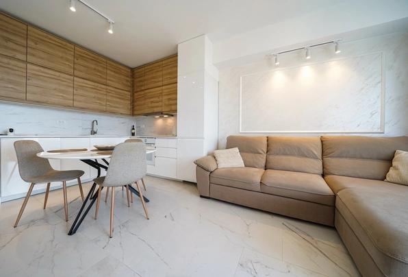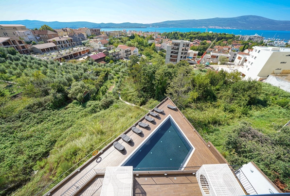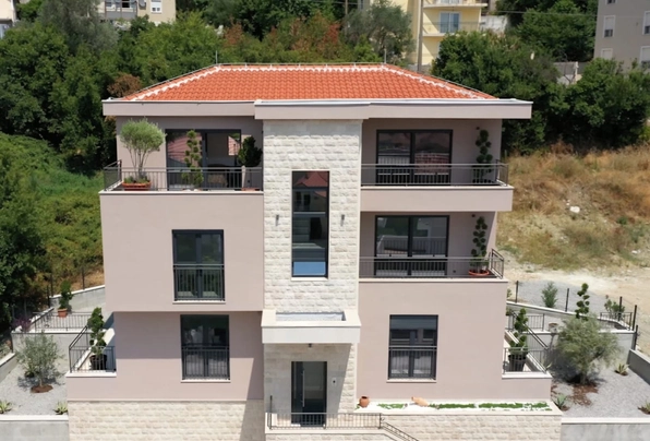 Продажа Тиват № 7227. Современная квартира с выходом на просторную террасу и бассейном на крыше. 55 м2. 2 спальни, новый дом. Перспективный район, рядом вся развитая инфраструктура. Прекрасное предложение для жизни или для сдачи в аренду. Без дополнительных вложений!
