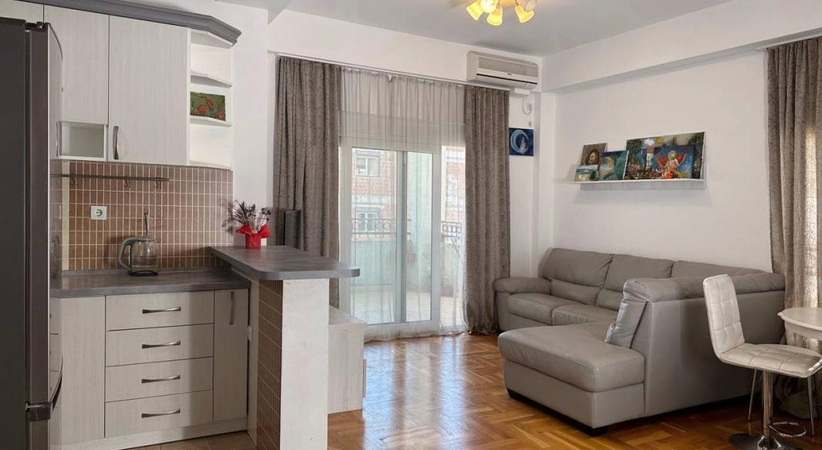 Продажа ID7406. Квартира площадью 72м2 (по документам 65м2, без террасы) на 3 этаже. В квартире: 2 спальни, гостиная с кухней, туалет с душевой, большая терраса. Есть всё для жизни: необходимая мебель и бытовая техника, потолки 3м. Во дворе: роштиль (грил-патио), сад, есть возможность купить место в гараже. Идеально с детьми. Летом ежедневно приходит мастер, берет пробы воды и чистит бассейн. Недалеко монастырь Подмайна, гипермаркет HDL, Franca. Квартира в клубном доме в тихом месте в Будве, район Подмайна, территория прилегает к парку. Есть рядом бесплатные парковочные места.