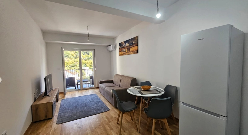 Продажа Будва № 7461. Продаётся уютная квартира площадью 45 м² в новом доме с лифтом, расположенная в районе Подкошлюн, прямо над супермаркетом HDL. Квартира находится на 4 этаже, полностью меблирована и оснащена современной бытовой техникой — полностью готова к проживанию. Характеристики: просторная гостиная, совмещённая с кухней, спальня, ванная комната, терраса с видом на горы. Преимущества: новый дом с лифтом, отличное расположение — рядом магазины, кафе, аптеки и остановки, квартира полностью готова к заселению идеально подходит для комфортного проживания или сдачи в аренду Будва — популярный приморский город Черногории, сочетающий развитую инфраструктуру и курортную атмосферу.