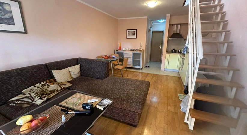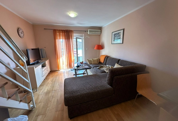 Продажа Бечичи. Продается квартира дуплекс с 1 спальней . Площадь 52 м2. Гараж включен в цену. Квартира меблирована. В доме есть лифт. Этаж 5.
