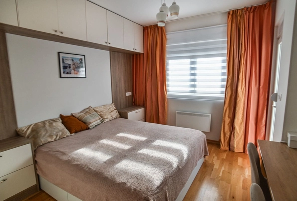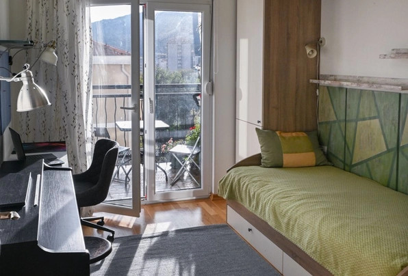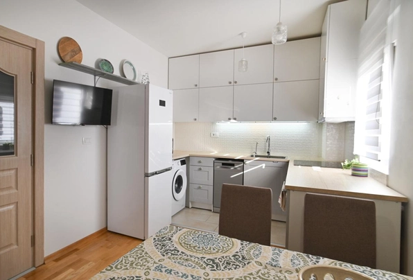 Продажа Будва № 7585. Продается квартира с 1 спальней , полностью укомплектована всей необходимой мебелью. Обилазница, рядом с ТехноМаксом. Этаж 3. Площадь 46 м2 + 4 м2 терраса. Новый дом. Также можно приобрести гаражное место в подземном паркинге за дополнительную плату.