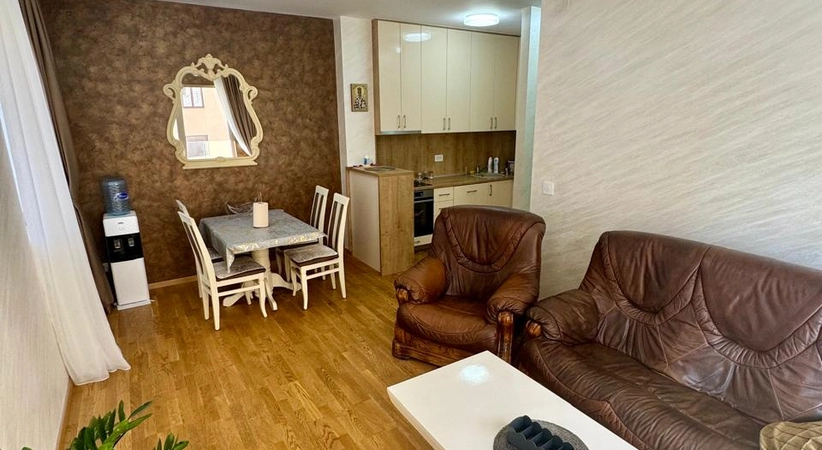 Продажа Бечичи № 7606. Продается квартира с 2 спальнями полностью меблирована и готова к заселению. Новый дом, лифт. Этаж 2. Солнечная сторона. Паркетный пол. Площадь 59 м2. Новая мебель.