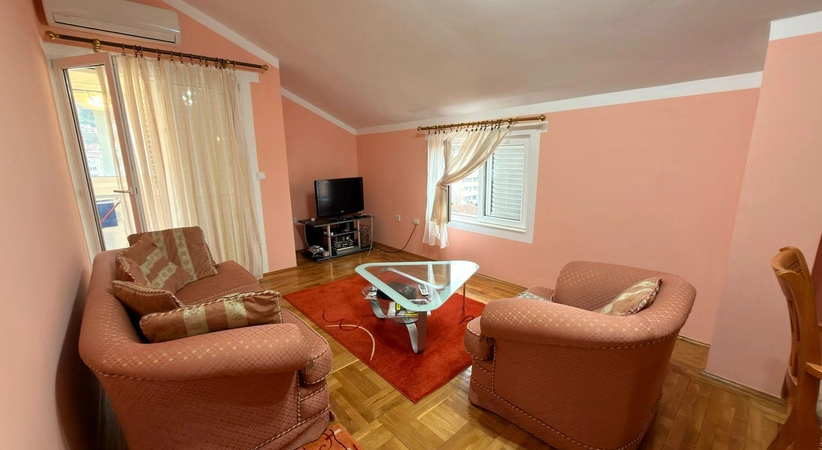 Продажа Будва № 7750. Квартира с 2 спальнями, 50 м2. Вид на горы. Удобная планировка. Качественный ремонт. Полностью меблирована. Встроенные шкафы. Оснащена всей необходимой и техникой. Сплит-система, бойлер. Качественная отделка. Чистая документации. Возможна продажа в кредит. Рядом новая школа, кафе Гарден. До набережной 10 минут пешком.