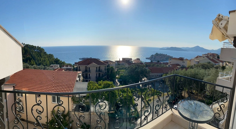 Продажа Святой Стефан № 7759. Уютная квартира 91 м2, последний этаж, 4 спальни, 2 санузла, 2 террасы. Панорамный вид на море. Святой Стефан. Квартира полностью меблирована и оснащена бытовой техникой. Отличное предложение для комфортного проживания или для сдачи в аренду. Без дополнительных вложений.