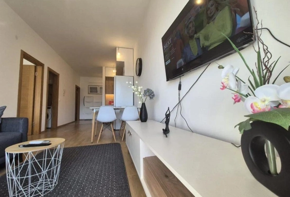 Продажа Будва № 7821 На продажу квартира с 2 спальнями в новом доме возле моря, солнечная южная сторона, вид на море и горы. Свое гаражное место. Полностью с мебелью и техникой. Общая площадь 56м2. Паркет. Терраса. Лифт. До моря 400 метров. Рядом супермаркет, рестораны, фитнес центры и другое.