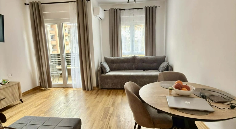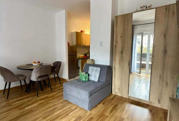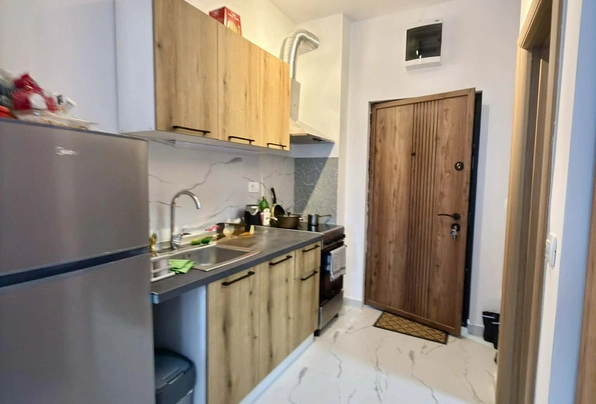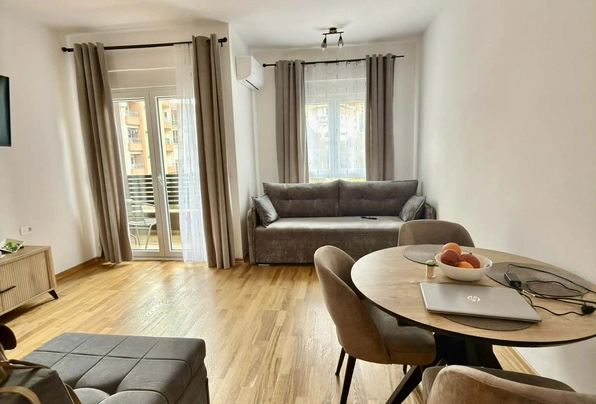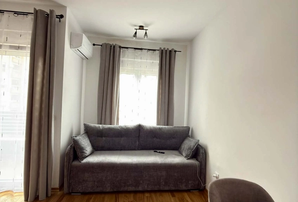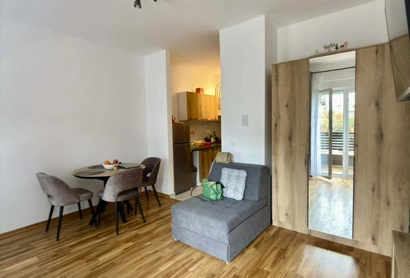Продажа Будва № 7836. Продается студия в новом доме. Меблирована. Площадь 31 м2. Третий этаж, лифт. Солнечная сторона. паркетный пол.