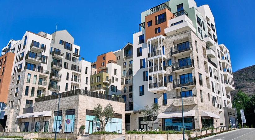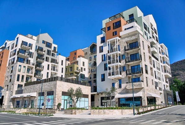Продажа ID7886. Стильный апартамент площадью 102 м² с двумя спальнями в престижном комплексе Boka Place рядом с Porto Montenegro представляет собой современное пространство с продуманной планировкой, включающей просторную гостиную с кухней, две спальни и две террасы, откуда открываются виды на город и природное окружение; интерьер выполнен в актуальном стиле с акцентом на функциональность и комфорт, а сама локация обеспечивает шаговую доступность к ресторанам, бутикам, фитнес-центрам и SPA, при этом Tivat Airport находится всего в 10 минутах езды, Kotor — в 15 минутах, а Budva — в 30 минутах, что делает объект привлекательным как для личного проживания, так и для инвестиций.