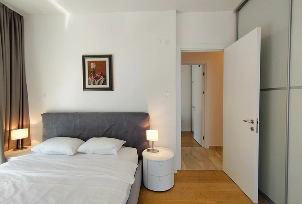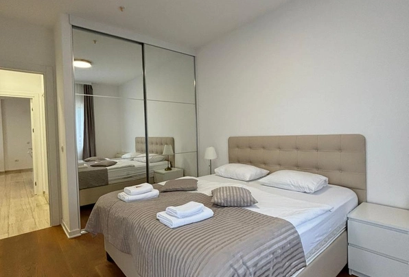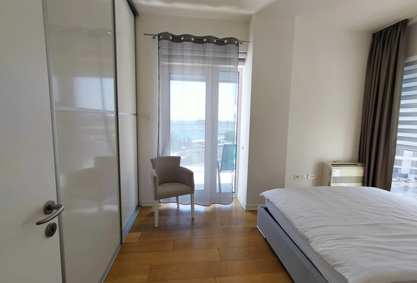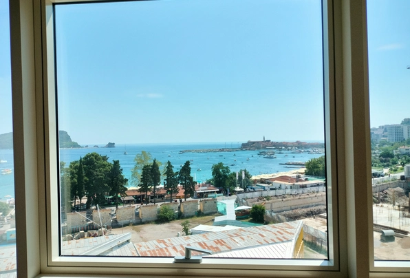 Продажа Будва № 887. Квартира с 2 спальнями с видом на море в самом центре Будвы. Новый дом. Лифт. 2 этаж. Два санузла. Большая терраса. Общая площадь 69м2 + 15м2 терраса. Качественная отделка всего здания и квартиры. Новый дом. Отличное предложения для комфортного проживания или для сдачи в аренду. Без дополнительных вложений!