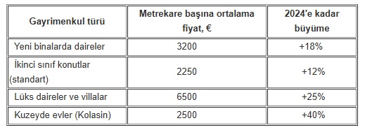 Karadağ'da kıyı ve kuzey bölgelerindeki konutların metrekare başına ortalama fiyatı