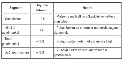 2026 yılında, yatırımcıların altyapı geliştirme nedeniyle sermayeleştirme potansiyelinin en yüksek olduğu Bar ve Ulcinj'deki yapım aşamasındaki projeleri değerlendirmeleri önerilir.