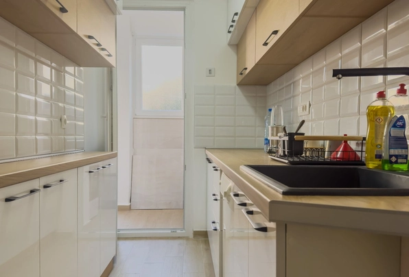 Budva kiralık daire #7708. Uzun süreli kiralık iki yatak odalı daire, ilk kiracı, 64 m² + 6 m² balkon. Yüksek katlı bina. Oturma odası, mutfak (bulaşık makinesi), iki yatak odası, duşlu banyo, balkon. Bina yakınında her zaman park yeri mevcuttur. Ödeme koşulları: ilk ay kirası, son ay kirası ve depozito. Ayrı faturalandırma.