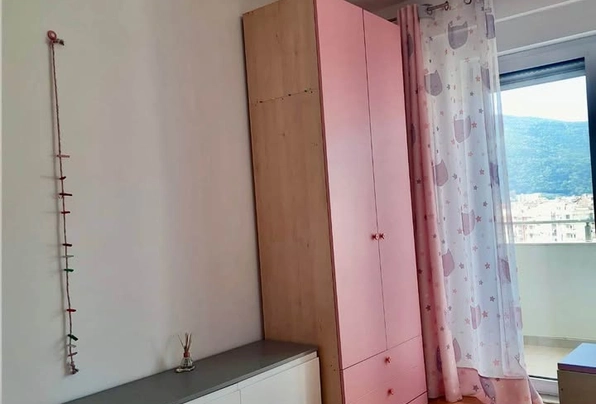 Budva #7196'yı kiralayın. Bir yıl veya daha uzun süre için, 3 yatak odalı daire, 92 m2, deniz manzaralı büyük bir ter…