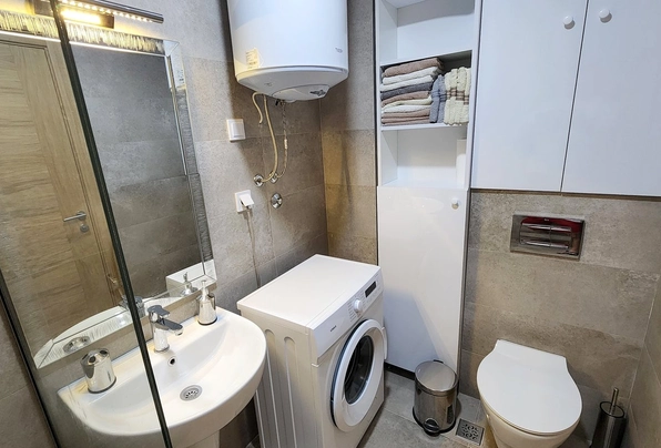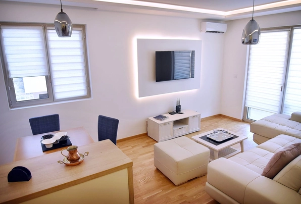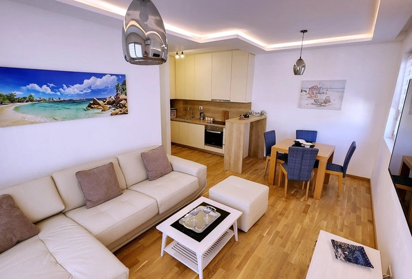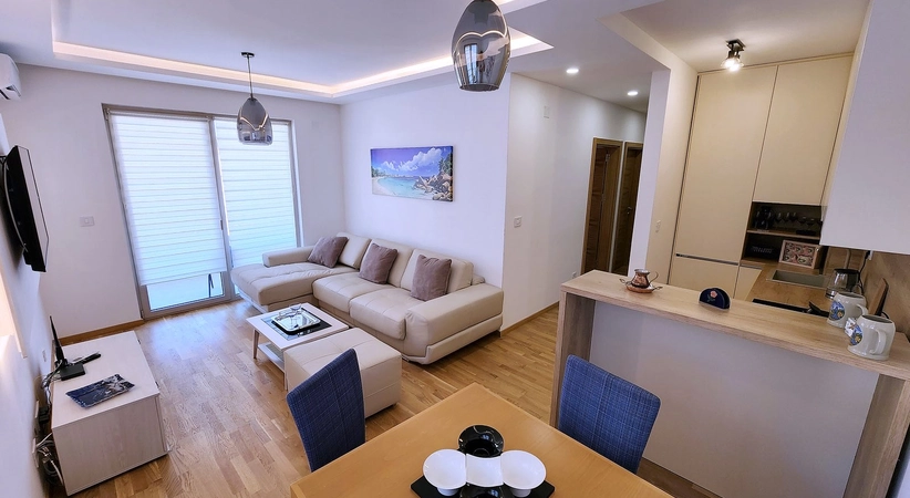 Becici Kiralık Daire #7873. İki yatak odalı daire uzun süreli kiralama için uygundur. Dairede konforlu bir konaklama için ihtiyacınız olan her şey mevcuttur. Parke zemin ve güneşli bir konuma sahiptir.