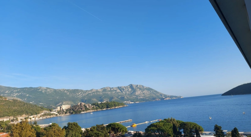 Budva'da kiralık daire #7892. Geniş aileler için ideal, ferah daire! 97 m², 9. kat, TRE CANN kompleksi. 3 yatak odası, 2 banyo, oturma odası, oturma odasının yanında mutfak, çalışma odasında küçük mutfak, geniş teras, deniz manzarası, dağ manzarası, yerden tavana pencereler, üst katta havuz, yemek siparişi imkanı. Kompleks, restoranlar, kafeler, butikler, spa merkezleri, yüzme havuzları, bankalar, güzellik salonları ve yakınlarda bir Volli süpermarketi sunmaktadır. Ödeme koşulları: ilk ay kirası, son ay kirası ve depozito. Noter onaylı sözleşme gereklidir!