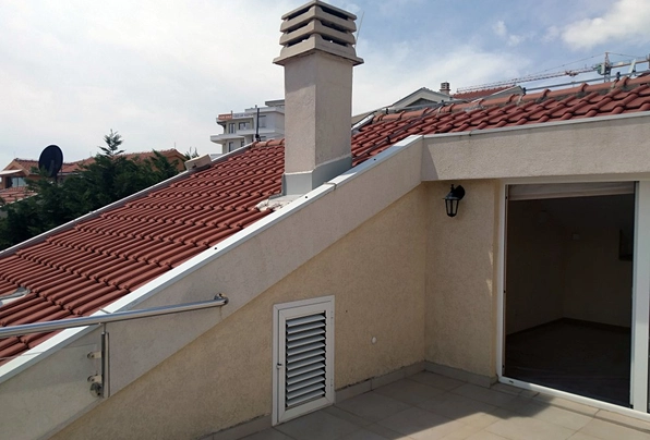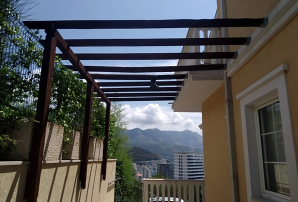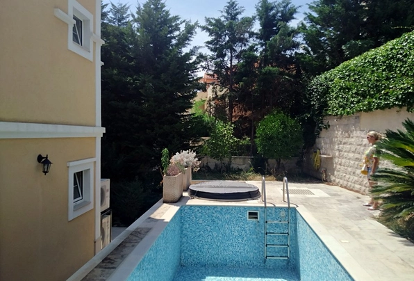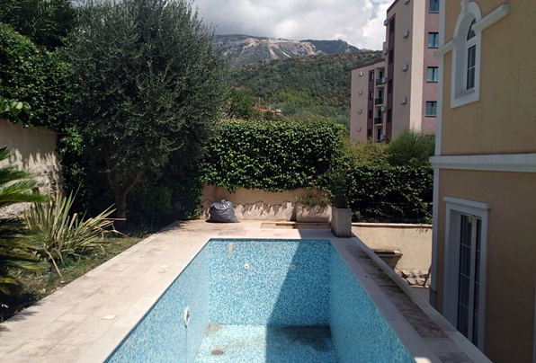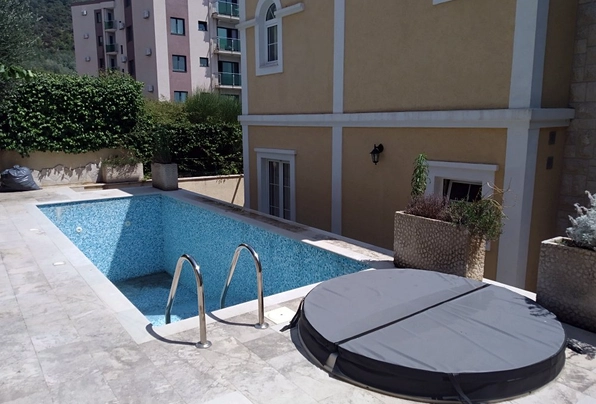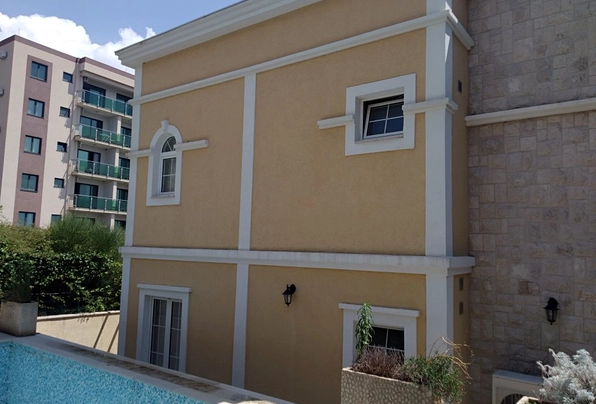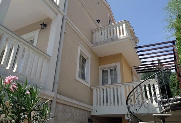 Satılık 2079. Becici'de bir yazlık kompleksinde, çatı katı, yüzme havuzu ve garajı olan üç katlı bir villa satılıktır. 393 metrekare villa m., Karadağ'ın iklim özellikleri dikkate alınarak Avrupa standartlarına göre tasarlanmış ve inşa edilmiştir. Cephe, modern malzemelerle yalıtılmış ve ısıl olarak yalıtılmıştır. İyi düşünülmüş ısıtma sistemi. Evin arka tarafında yer alan yüzme havuzlu arsa, konut sakinleri için maksimum kolaylık sağlayacak şekilde planlanmıştır. Sitede sabit bir taş ızgara var. Alt katta 1 araçlık bir garaj, sauna, sokağa erişimi olan küçük bir yemek odası, bir yatak odası, bir banyo ve depolu bir hizmet odası bulunmaktadır. Zemin katta geniş bir mutfak - yemek odası, balkona açılan şömineli geniş bir oturma odası, giyinme odası ve banyo bulunmaktadır. İkinci katta üç yatak odası ve iki banyo bulunmaktadır. Çatı katında bir banyo, küçük bir mutfak ve geniş bir balkona erişimi olan bir yemek odası bulunmaktadır. Bu balkon denizin, dağların ve Becici şehrinin panoramik manzarasını sunmaktadır. Adriyatik'in güzel manzarasına sahip küçük ziyafetler için yaz verandası veya dinlenme ve güneşlenme alanı olarak kullanılması uygundur. Evde elektrikli yerden ısıtma mevcuttur. Tüm banyolar geniş ve iyi donanımlıdır. Villa kısmen mobilyalıdır. Mobilyalardan, gerekli tüm ekipman ve ev aletleri ile birinci ve çatı katlarına iki mutfak monte edilmiştir. Villa, yetkisiz kişiler ve arabalar için erişim kontrolü olan bir yazlık kompleksinde yer almaktadır.