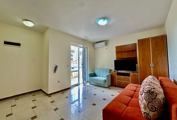 Satılık 1 yatak odalı daire, Rafailovici, deniz manzarası