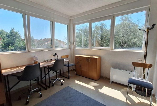 Petrovac satılık #7434. Bu rahat 2 yatak odalı daire, 4 katlı bir binanın 1. Karadağ katında (2.) yer almaktadır. Depolu rahat bir giriş holü, klimalı büyük bir katlanır kanepeli oturma odası, bulaşık makinesi içeren yeni bir mutfak, giyinme odası veya çalışma alanı, çift kişilik yatak ve gardıroplu bir yatak odası ve ranza, çalışma masası ve gardıroplu ikinci bir yatak odası bulunmaktadır. Sessiz yeşil bir avluya bakmaktadır ve küçük bir deniz manzarasına sahiptir. Toplam alan 60 m²'dir (37 m² + ayrı bir yatak odasına dönüştürülmüş kapalı bir teras). Kumlu plaja uzaklığı 650 metredir. Otobüs durağı 2 dakikalık yürüme mesafesindedir. Mağazalar, restoranlar, kafeler ve fırınlar 5-7 dakikalık yürüme mesafesindedir. Dinlenme alanına sahip kapalı yeşil avlu. Binanın yakınında halka açık otopark mevcuttur (her zaman boş yer vardır). İyi kiralama potansiyeli.
