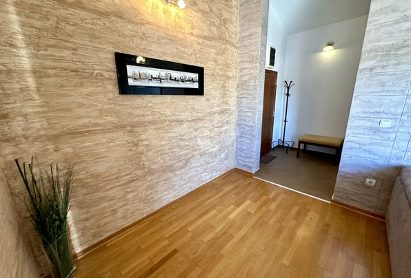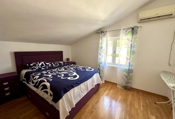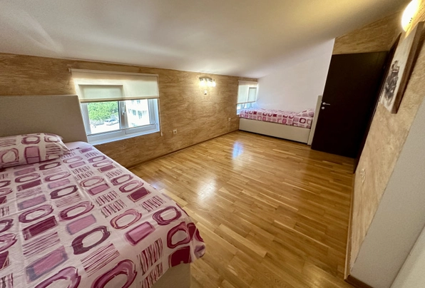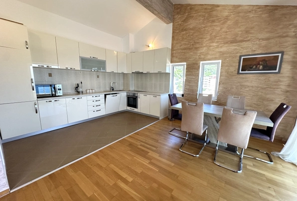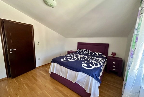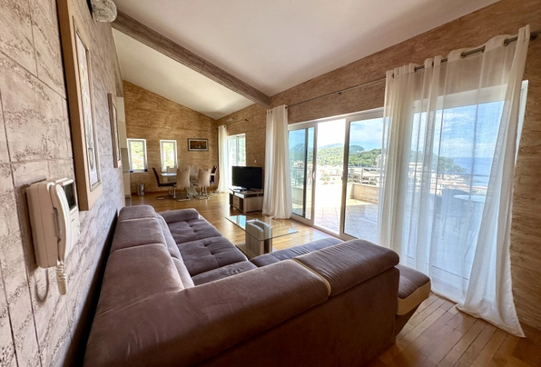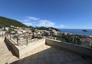 Petrovac'ta satılık #7587. Petrovac'ın en güzel manzaralı dairesi. Bu aydınlık ve ferah dairede geniş bir oturma odası, 2 yatak odası ve 2 banyo bulunmaktadır. Dairenin eşsiz özelliği, açık deniz ve şehir manzarasına sahip olmasıdır. Manzaranın keyfini sadece terastan değil, rahat oturma odasındaki kanepeden de çıkarabilirsiniz! Daire, alanın verimli kullanımıyla iyi düşünülmüş bir yerleşime sahiptir. Dairenin toplam alanı yaklaşık 105 m²'dir. Daire, asansörlü modern bir binanın en üst katında yer almaktadır. Bina yüksek kaliteli, sıcak ve kurudur. Bir yönetim şirketi tarafından yönetilmektedir. Binanın halka kapalı, yürüyüş ve dinlenme için uygun özel bir alanı vardır. Bakımlı bahçede çiçekler ve meyve ağaçları bulunmaktadır. Tesis bünyesinde yüzme havuzu mevcuttur. Otopark yakındadır. Bu sakin yerleşim bölgesi denize 500 metre ve şehir merkezine 3 dakikalık yürüme mesafesindedir.