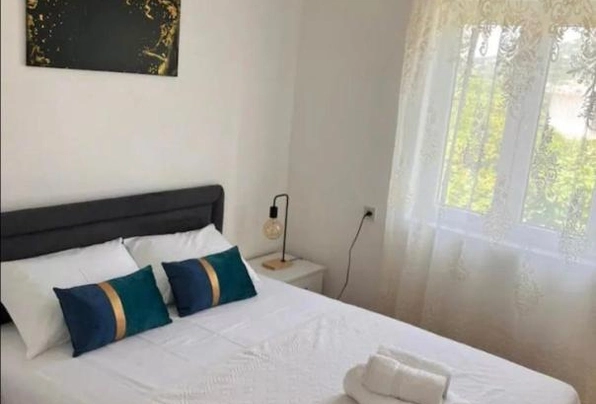 Sutomore'da satılık #7640. Sutomore'da Rutki Caddesi üzerinde iki daireli bir ev satılıktır. Her daire 78 metrekare olup, mutfak ve oturma odasının bir arada bulunduğu bir alan, iki yatak odası, bir banyo ve bir terastan oluşmaktadır. Daireler mobilyalı ve gerekli tüm ev aletleriyle donatılmıştır. Toplam arsa 214 metrekare, bahçe ise 136 metrekaredir. Yazlık mutfak mevcuttur. Şehir suyu ve kanalizasyon bağlantısı vardır. Otoyola 200 metre, denize ise 800 metre mesafededir. Ev yasal olarak kayıtlıdır.