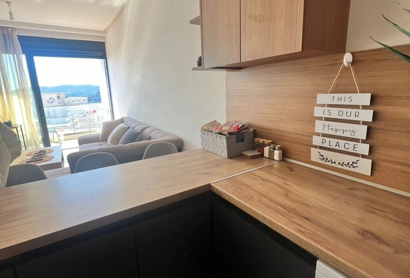Becici'de panoramik manzaralı, tek yatak odalı daire satılık.