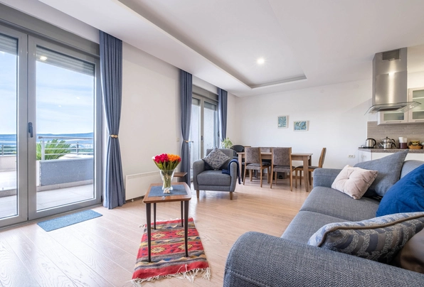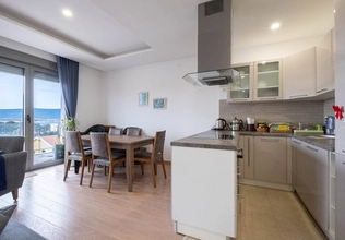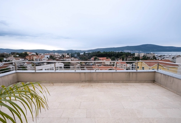 Tivat'ta panoramik deniz manzaralı ve geniş teraslı, ferah 2 yatak odalı daire.