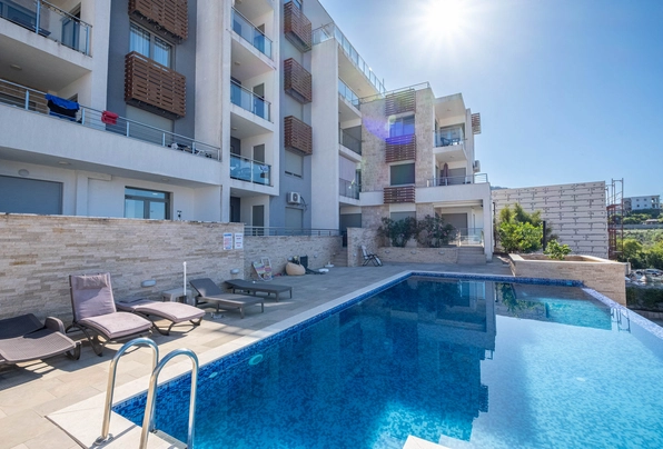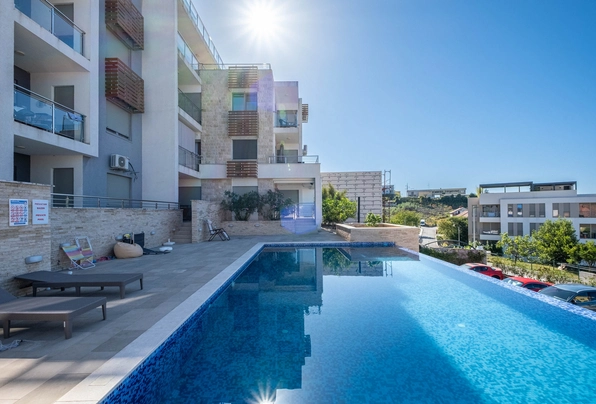 ID7825 numaralı daire satılıktır. Yüzme havuzu ve asansör bulunan bir konut kompleksinde, panoramik deniz manzaralı, geniş ve güzel döşenmiş bir daireyi satışa sunuyoruz. Konut kompleksi, okullar, klinik, mağazalar ve spor salonları da dahil olmak üzere tüm gerekli olanaklara yürüme mesafesinde elverişli bir konumdadır. Porto Montenegro 7 dakikalık yürüme mesafesindedir. Daire 87 m² olup, nefes kesen deniz ve çevre manzarasına sahip geniş 30 m²'lik bir terasa sahiptir ve dinlenmek için mükemmel bir yer oluşturmaktadır. İç mekan düzeni modern ve son derece fonksiyonel olup, doğal ışıkla dolu ve muhteşem deniz manzaralı terasa doğrudan bağlı açık plan mutfak-oturma odasına sahiptir. Dairede iki konforlu yatak odası, modern bir banyo ve ek bir misafir tuvaleti bulunmaktadır. Daire tamamen mobilyalıdır ve bulaşık makinesi de dahil olmak üzere gerekli tüm ev aletleriyle donatılmıştır. Her odada klima mevcuttur. Bu mülk, yüksek kira potansiyeli ile hem özel konut hem de yatırım fırsatları sunmaktadır.