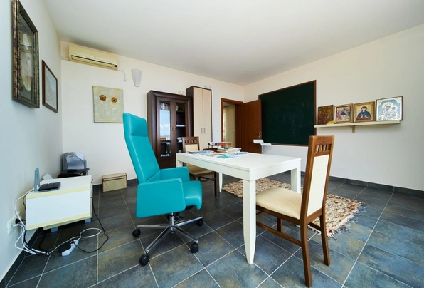 Satılık ID7887. Villa, Ivanovići'nin Bečići bölgesinde, Nova ulica b/b adresinde yer almakta olup, 415 m² arsa üzerinde toplam 495 m² alana sahip geniş bir konuttur. 3,3 × 7 m ölçülerinde bir yüzme havuzuna sahip olan villa, limon, portakal, mandalina, nar, elma, kivi, kumkuat, zeytin ve iğne yapraklı ağaçlar da dahil olmak üzere meyve ve süs ağaçlarıyla çevrili bakımlı bir bahçeye sahiptir. Villa dört katlı olup, bodrum katında iki araçlık garaj, giyinme odası, çamaşırhane, atölye, kiler ve depolar bulunmaktadır. Zemin katta geniş bir oturma odası, mutfak ve yemek alanı, şömine, misafir banyosu ve havuza ayrı çıkışı olan bir sauna yer almaktadır. İkinci katta, her biri özel banyo ve duşa sahip üç yatak odası ve deniz manzaralı geniş bir teras bulunmaktadır. Üçüncü kat ise ayrı banyolu bir ana yatak odasına ayrılmıştır. Dördüncü katta, Sveti Stefan, Aziz Nikolas Adası ve tüm Budva Rivierası'nın panoramik manzarasına sahip geniş bir teraslı ofis bulunmaktadır. Evde iki su kaynağı (şehir şebeke suyu ve ek olarak kırsal su şebeke suyu) mevcuttur; ısıtma şömine, elektrikli yerden ısıtma ve klima sistemi ile sağlanmaktadır; ulaşım kolaylığı, sessiz ve saygın bir ortam sunulmaktadır; nakit ödeme kabul edilmektedir.