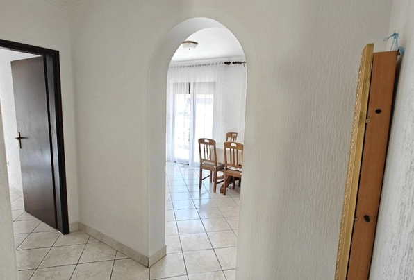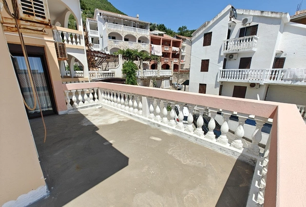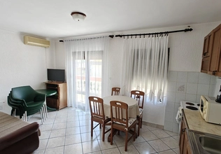 Petrovac'ta satılık #7906. Asansörsüz bir binanın 3. katında, 44 m2 büyüklüğünde, tek yatak odalı daire. Kısmi deniz manzaralı geniş teras. Daire eşyalıdır ve mobilyalarıyla birlikte satılmaktadır.